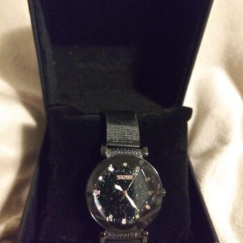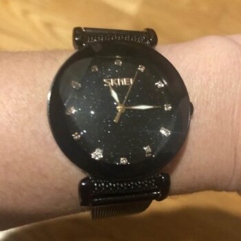 I ordered this watch for my wife after it was recommended to me by a friend. My wife really does like the watch since it caught her attention when she saw it for the first time. She says it is elegant, stylish, and she likes the starry sky dial with the diamond time mark. She likes that it has waterproof, scratch and wear resistant features. My wife likes the analog display, the stainless steel mesh strap and buckle. She says it fits her perfectly after adjusting the strap and she says it is comfortable to wear, easy to put on and take off and she likes that it matches most of her outfits. She says it seems to be made of good quality materials, and appears to be durable, easy on her wrist and keeps accurate time. She says she has been wearing it to her professional meetings and outings and she has gotten few compliments. My wife does like the shiny and smooth front surface and the rounded edges. For the quality and price point, it is great value for money. I would recommend it.