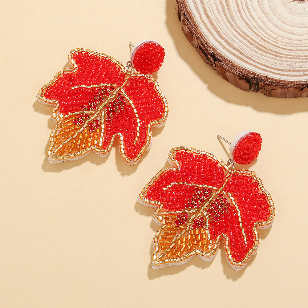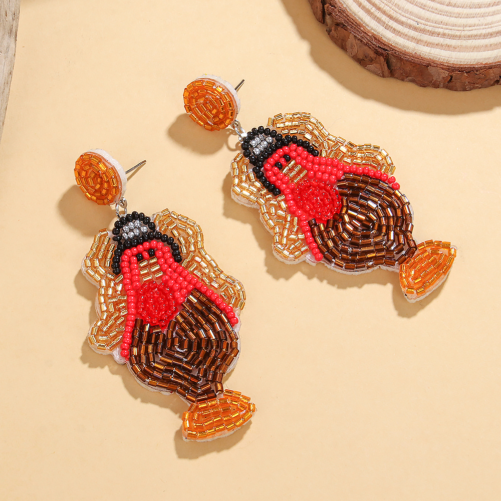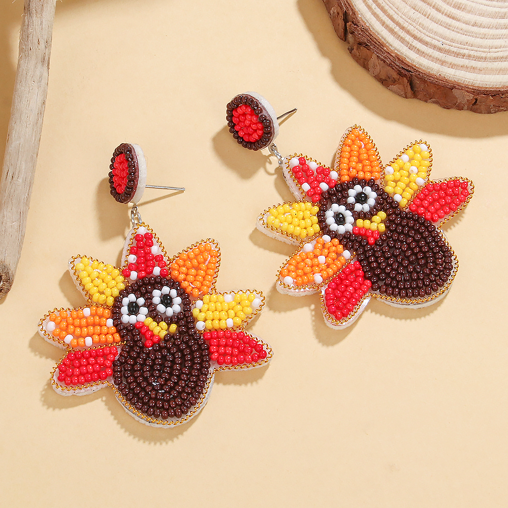 Thanksgiving Fall Beaded Earrings – Maple Leaf Pumpkin Turkey Dangle Jewelry