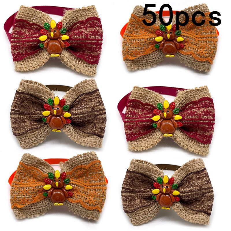 Get your furry friends ready for the holiday season with our 50 Thanksgiving Bowtie Neckties! These delightful small dog accessories feature fun fall designs that perfectly capture the spirit of Thanksgiving. With charming turkey motifs and vibrant colors, these bowties are sure to make your pets the center of attention at any gathering, from family dinners to festive parties.