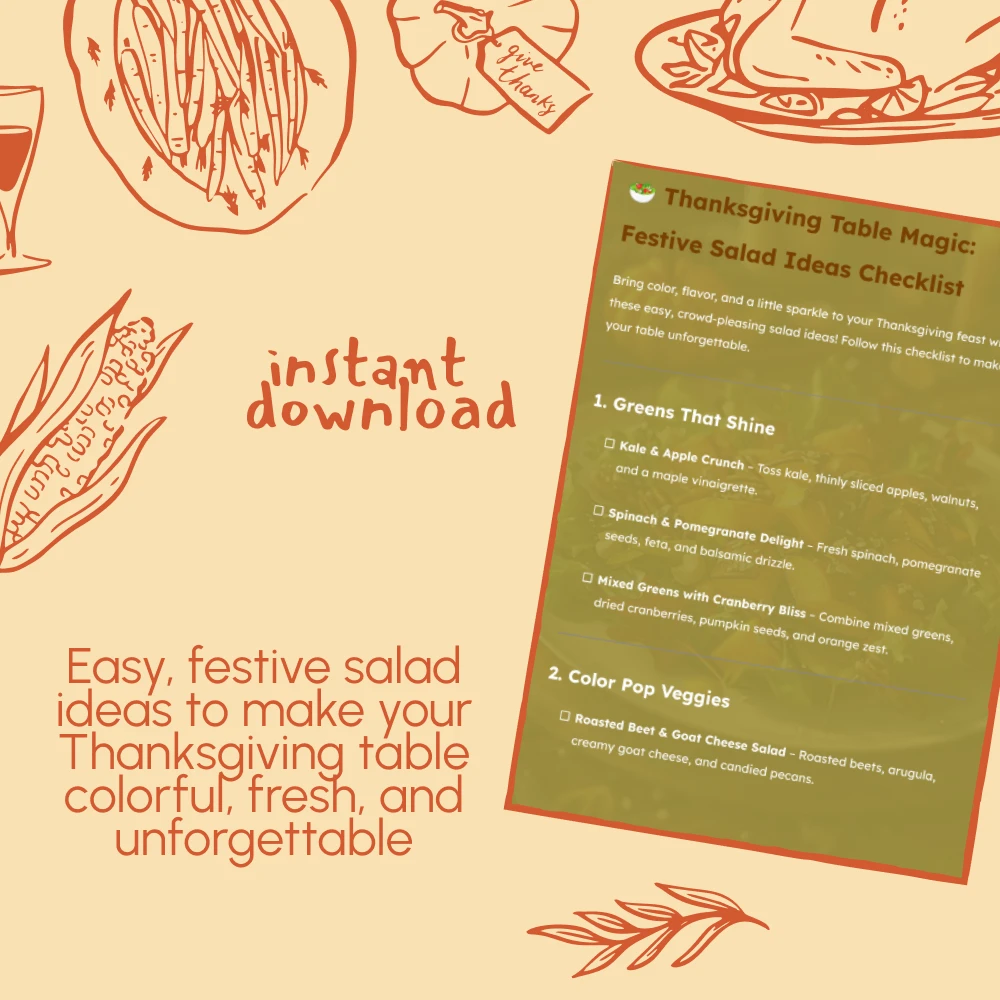 Download the Thanksgiving Table Magic: Festive Salad Ideas Checklist today and start crafting your most stunning holiday spread yet. Add warmth, freshness, and festive sparkle to every plate—your guests will remember your salads long after the last bite of pie!