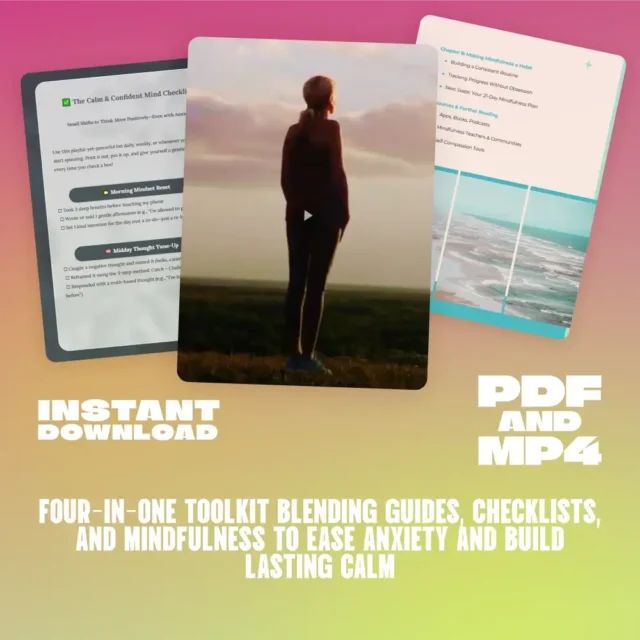 When your thoughts won’t slow down, having a clear, compassionate plan matters. The Anxiety Relief Bundle: A Path to Calm is a practical 4-in-1 Bundle that blends gentle mindset tools, step-by-step mindfulness, a playful daily checklist, and a structured course outline—so you can move from spiraling to steady, one small action at a time. Designed for real life, this digital download gives you fast SOS techniques and long-term habits you’ll actually use.