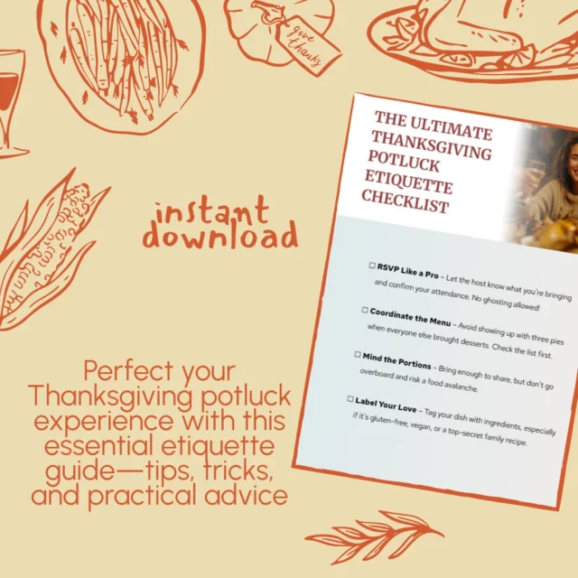 Don’t let Thanksgiving stress you out—download your Ultimate Thanksgiving Potluck Etiquette Checklist today and get ready to make your next holiday gathering a breeze. Whether you’re a seasoned host or a first-time attendee, this guide will help you create memorable moments around the table. Download now and start planning your perfect contribution!