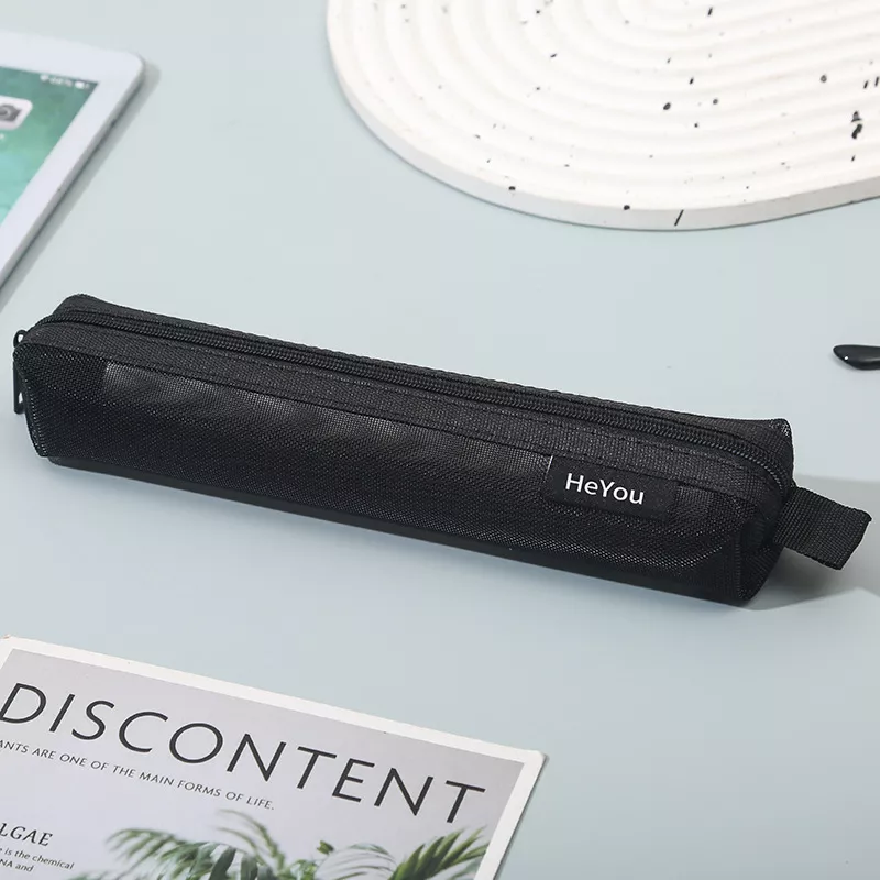 Stay organized and stylish with this sleek transparent mesh pencil case. Designed with a clear body and a classic black trim, this pouch makes it easy to see all your essentials at a glance. No more digging around to find the right pen or pencil. Lightweight yet durable, it is perfect for students, professionals, and anyone who loves neat and functional storage.