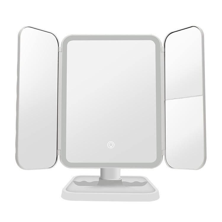 Tri-Fold LED Makeup Mirror with 3-Color Lighting and USB Rechargeable Battery