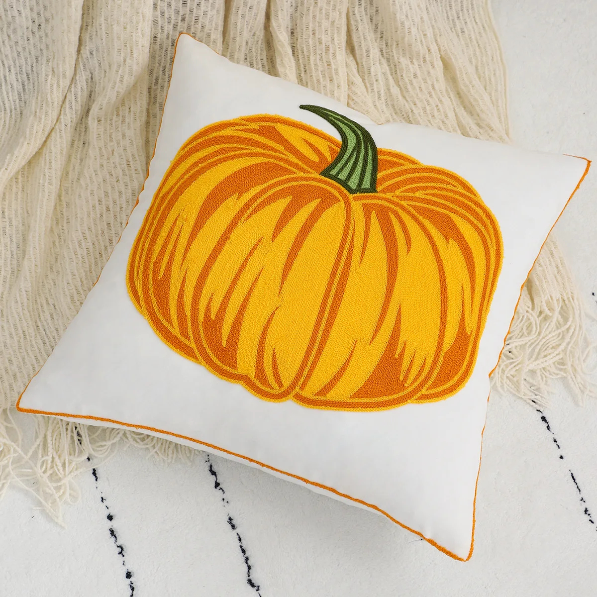 Velvet Pumpkin Throw Pillow Cover with Pumpkin Embroidery