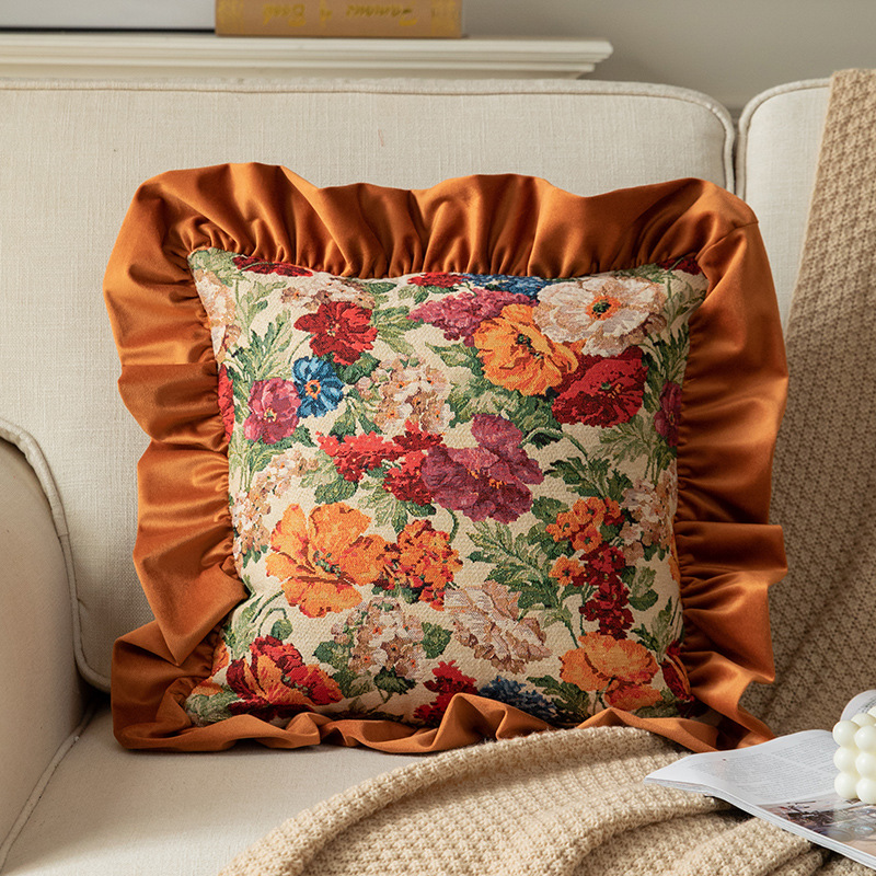 Bring charm, comfort, and sophistication into your home with the Velvet Ruffle Floral Cushion Cover. Designed to capture the beauty of vintage decor, this luxurious pillow cover combines soft velvet texture with delicate ruffle details and floral accents. The rich blend of orange and dark green tones adds depth and warmth, perfect for creating a cozy, stylish atmosphere in any room.