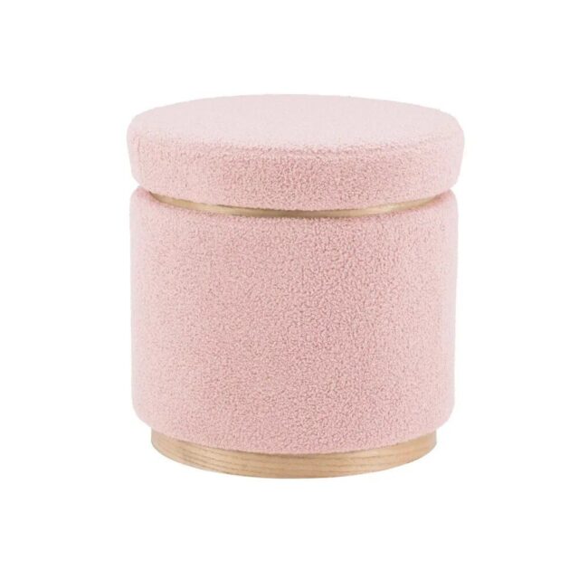 This Storage Ottoman Stool shines in its versatility. Perfect next to your favorite armchair, by a desk, or as a stylish accent to your makeup vanity, it seamlessly integrates into any decor. The natural finish pinewood trim subtly complements the blush sherpa, creating a piece that’s both eye-catching and understated. The soft fabric invites relaxation, making it an ideal footrest, while the sturdy construction offers reliable extra seating.