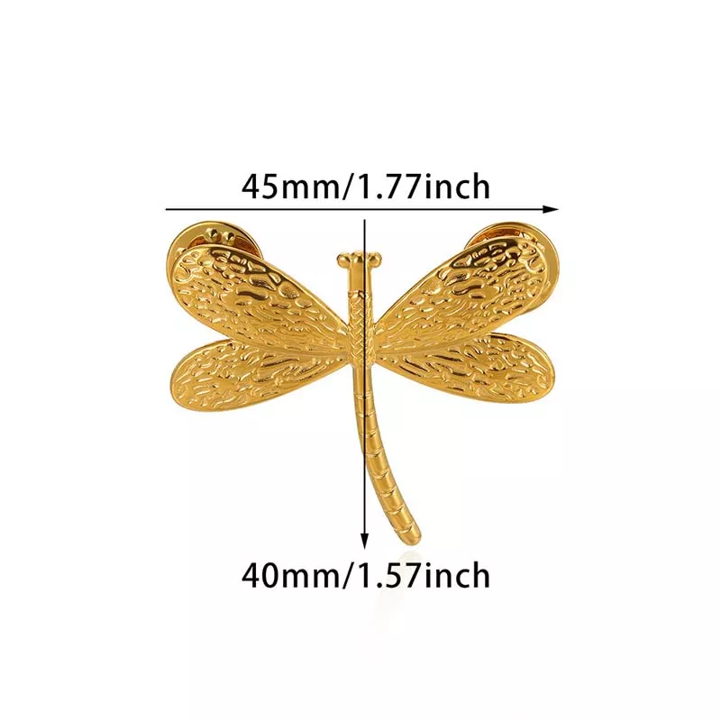 Elevate your look with the Vintage Gold Stainless Steel Dragonfly Brooch—a unique blend of nature and elegance.