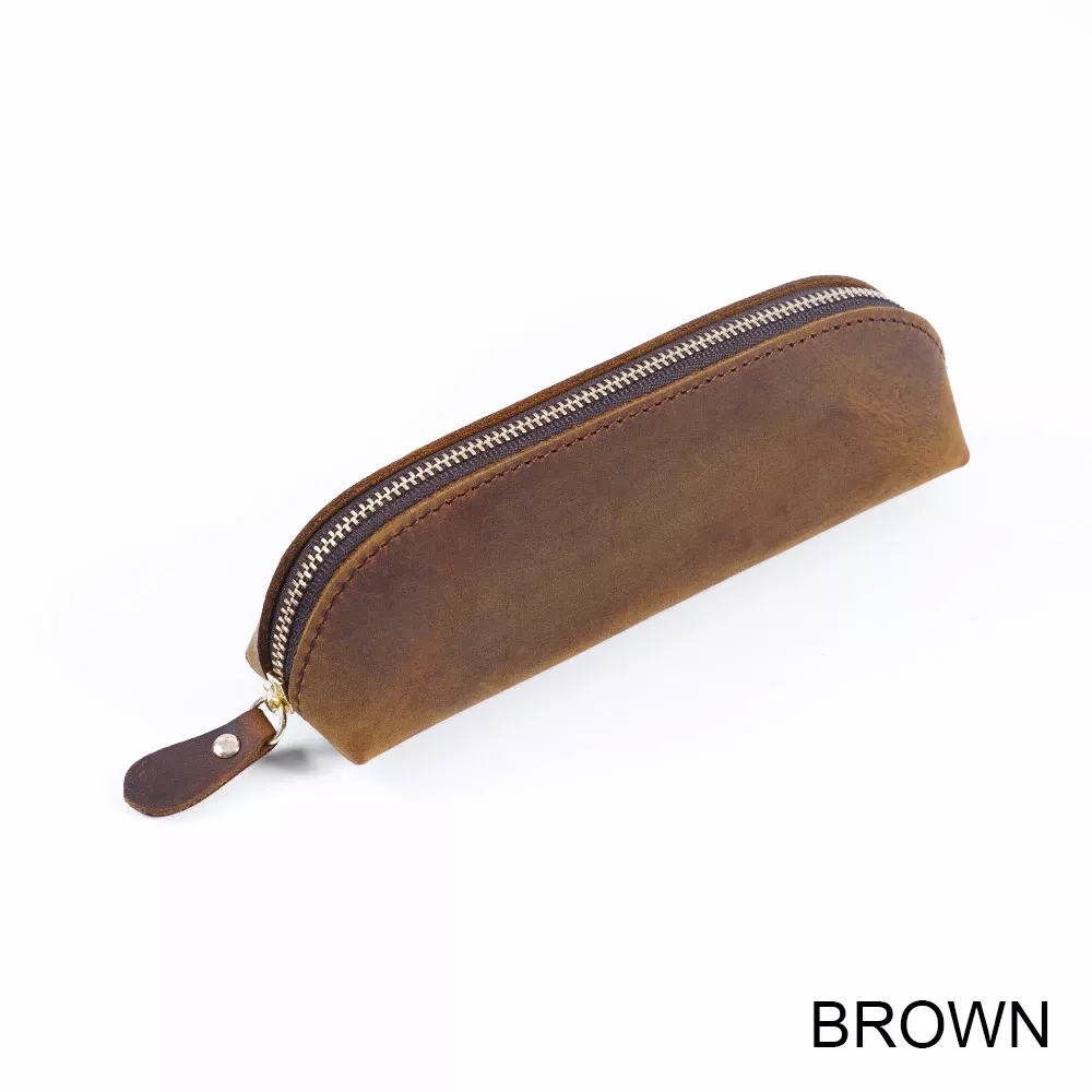 Discover the perfect blend of style and functionality with our Vintage Genuine Leather Zippered Pencil Case. This beautifully crafted organizer pouch is designed to keep your writing tools neatly stored while showcasing your taste for quality stationery. Made from soft and durable crazy horse leather, this pencil case evolves beautifully over time, becoming a unique reflection of your individual style.