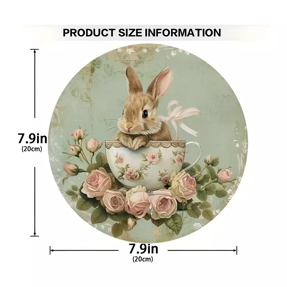 • Design: Circular shape with a heartwarming rabbit and teacup illustration