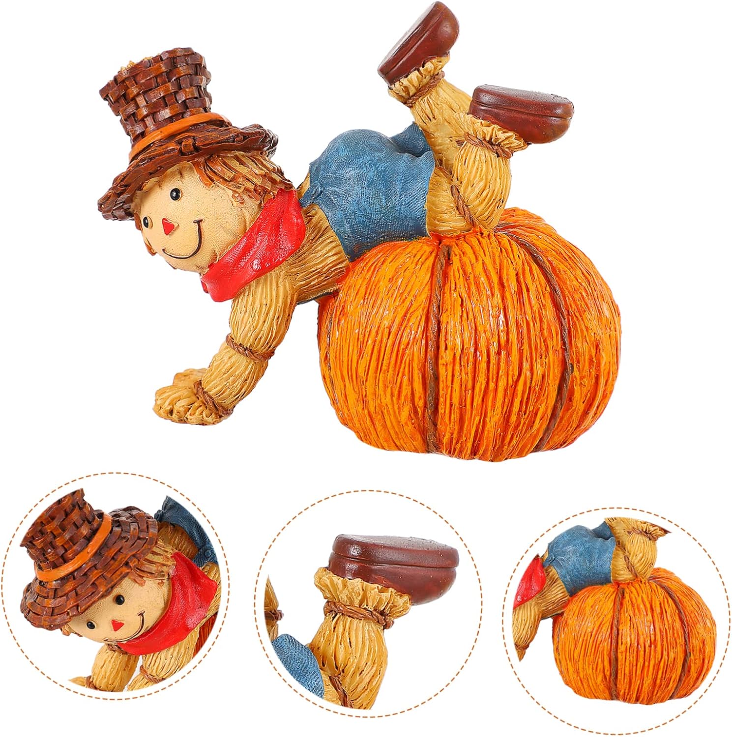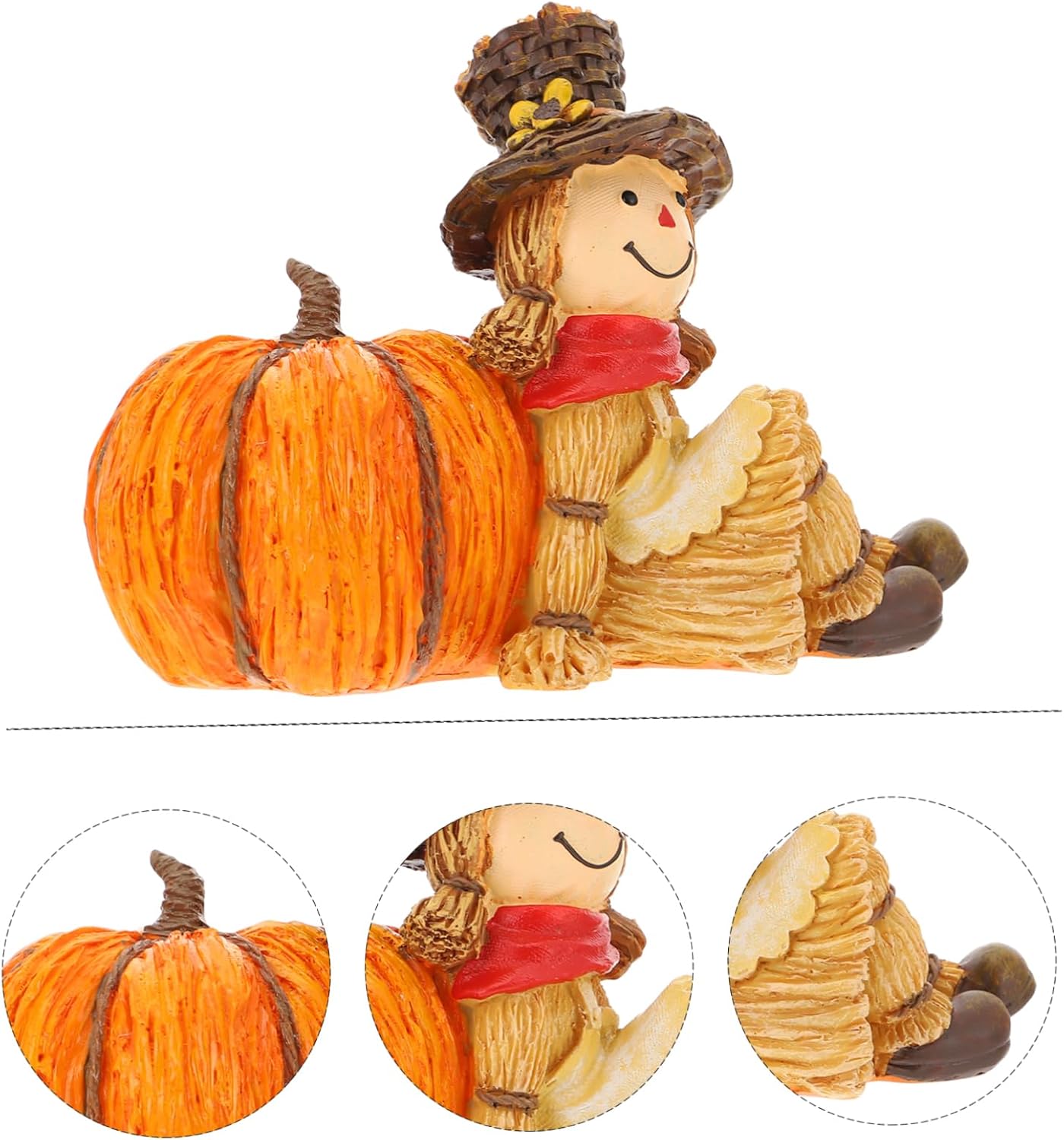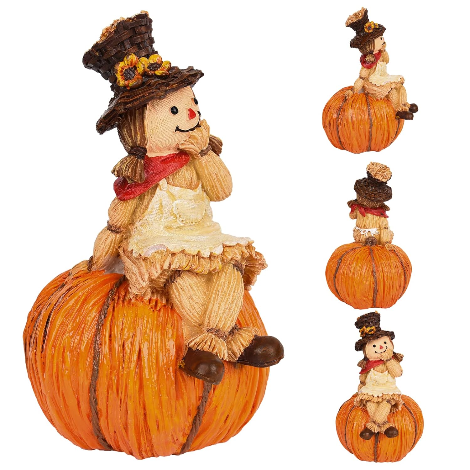 • Design: Features a cheerful scarecrow sitting atop a bright orange pumpkin, adding personality to any décor.