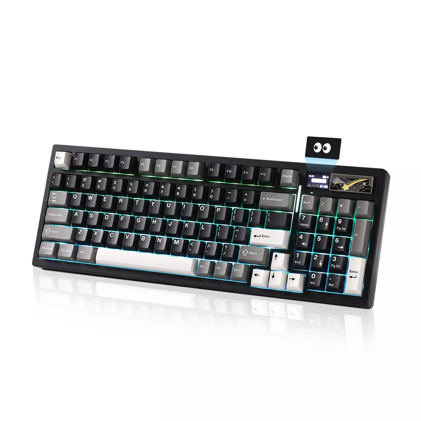 Experience unmatched typing and gaming with the Wireless Mechanical Gaming Keyboard featuring a stunning customizable LCD display and vibrant RGB lighting. This sleek, full-size keyboard brings you exceptional versatility, enabling effortless transitions between wired USB-C, Bluetooth, and high-speed 2.4GHz wireless connections. Ideal for gamers, programmers, and professionals alike, its 95-key compact layout preserves desk space without sacrificing functionality.
