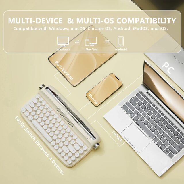 If you’re looking for a keyboard that does more than just type, this retro wireless model is your dream match. Its eye-catching style, device versatility, and clever functionality make it ideal for students, digital nomads, creators, and home office warriors. Say goodbye to boring keyboards and hello to the perfect blend of retro flair and modern performance.