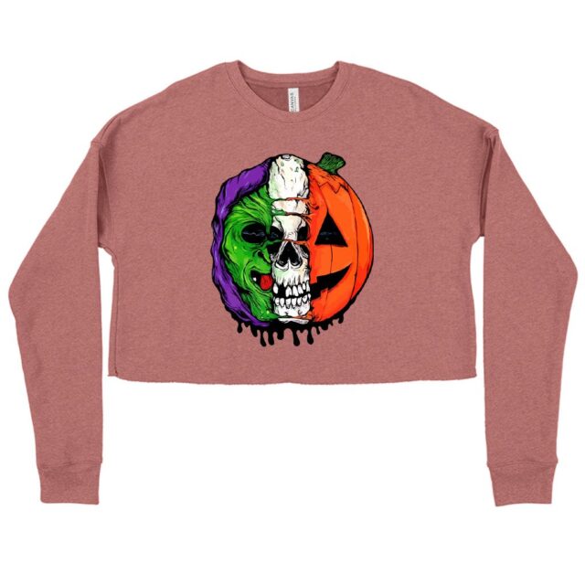 Women’s Cropped Fleece Halloween 3 Sweatshirt – Halloween 3 Silver Shamrock Masks Sweatshirt