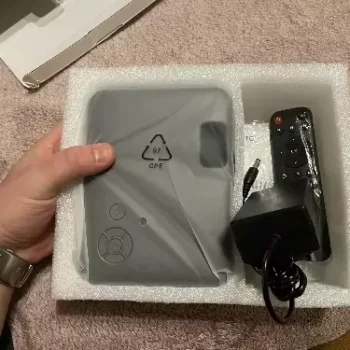 I am absolutely thrilled with my purchase of this mini portable LED projector! Its compact size belies the power packed within; delivering clear images with fantastic resolution that make both movies and video games come alive like never before experienced at home! And talk about convenience- setting up takes mere minutes thanks largely in part due to user-friendly interface.