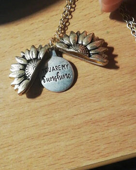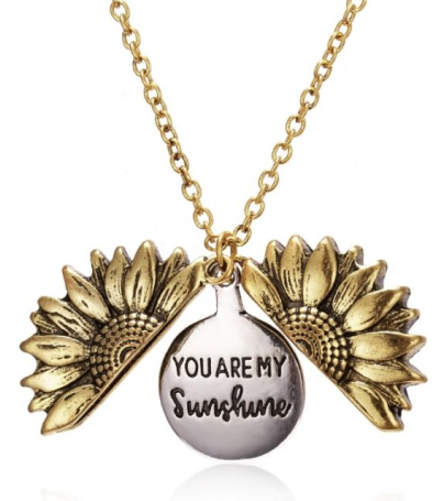 The pictures don't do justice to how cute this necklace is! It comes with earrings and a cute paper sunflower. My daughter has always loved sunflowers and she loved this necklace. And it opens with "You are my sunshine" engraved on the inside of the charm. Loved it!!!