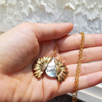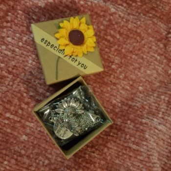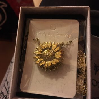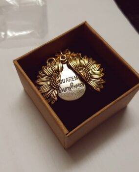 I bought this for my girlfriend and she loved the sentiment. Only thing I personally dislike about it is how it tangles. Maybe they should try a small latch to hold the two halves of the sunflower together. Or maybe even have them open by a hinge. Either way, if they were connected and could open I’d give it 5 stars.